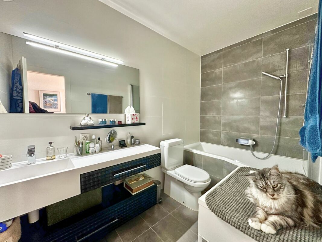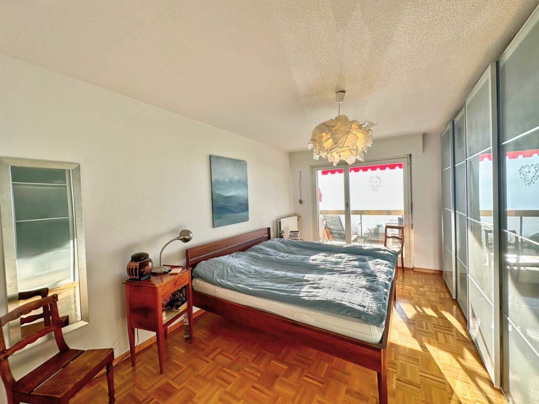 Profitez d’un balcon de 14m2 pour vos moments de détente, et bénéficiez d’une superbe vue sur le Léman et les montagnes. Deux garages et une cave son également à votre disposition (compris dans le loyer).