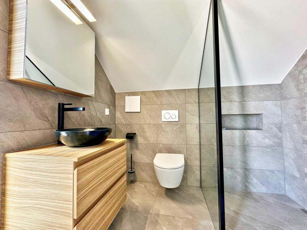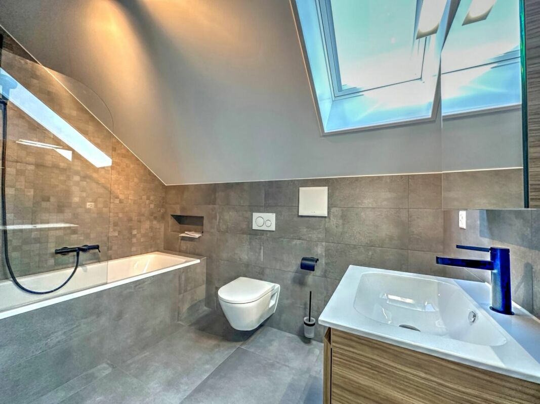 Profitez d’un grand jardin privatif avec système d’arrosage automatique et robot tondeuse, ainsi que d’un balcon.