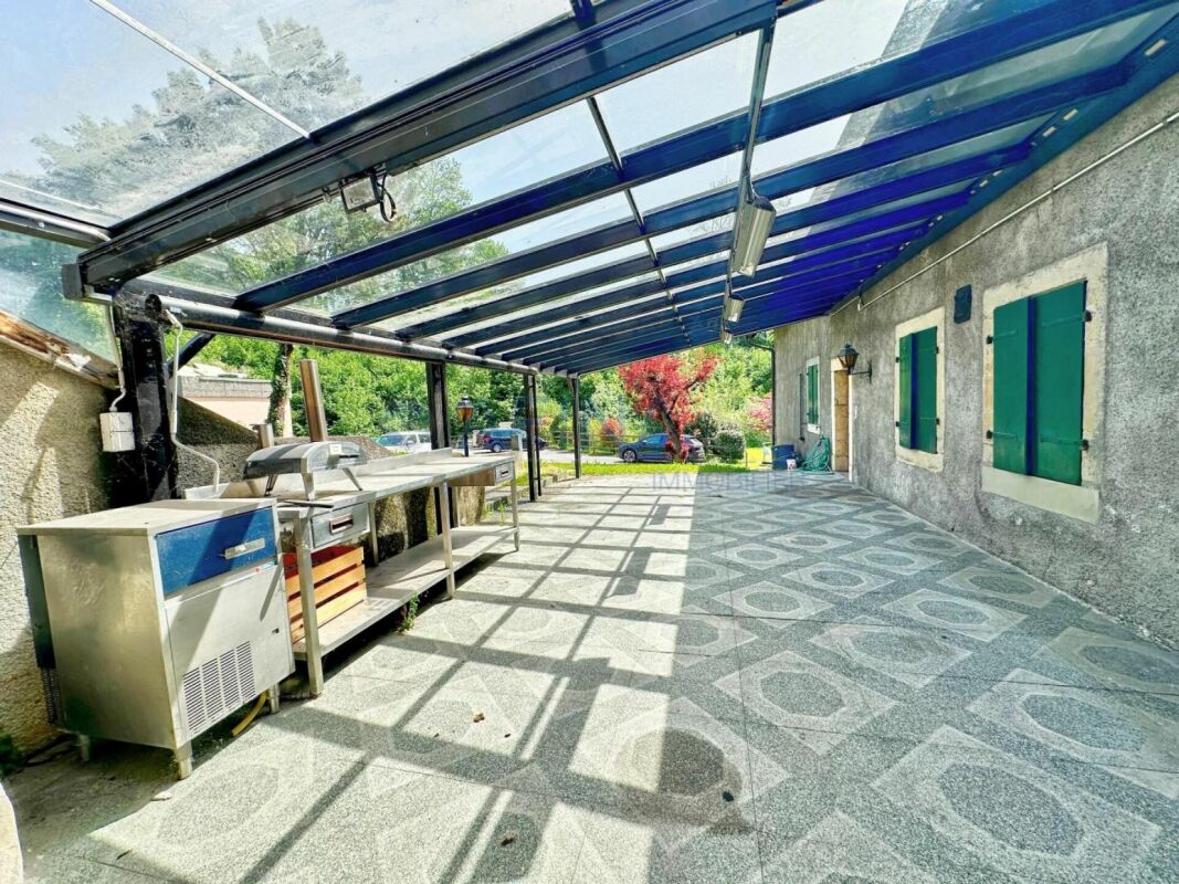Pour vos moments de convivialité, un vaste carnotzet entièrement équipé (bar, cuisine, WC) vous attend, avec un accès direct sous un couvert agrémenté d’une cheminée extérieure – idéal pour les réceptions ou les soirées d’été.