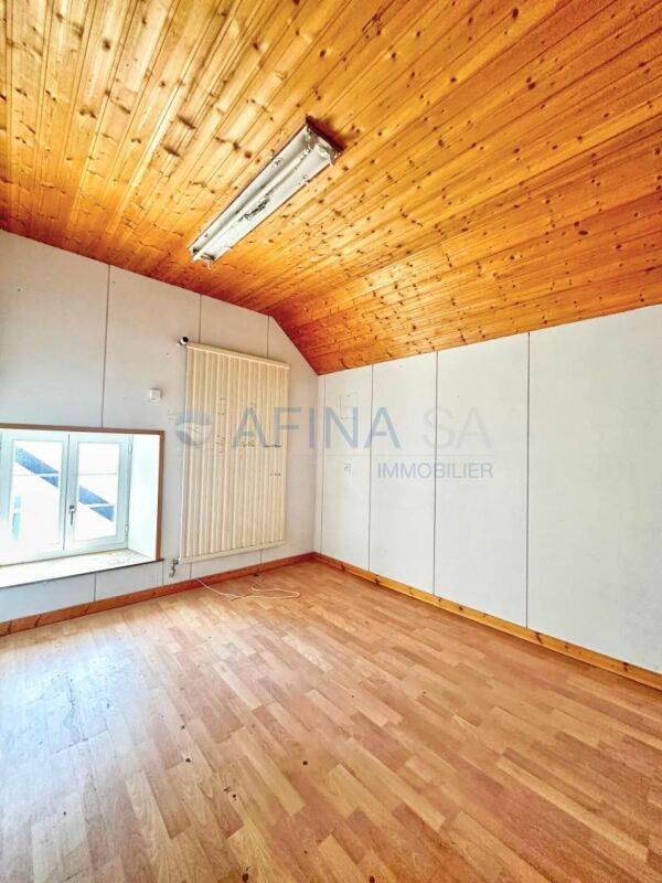 À l’étage, accessible directement depuis la route, une ancienne grange d’environ 200 m² offre de multiples possibilités : transformation en logement, atelier, bureaux ou grand dépôt.